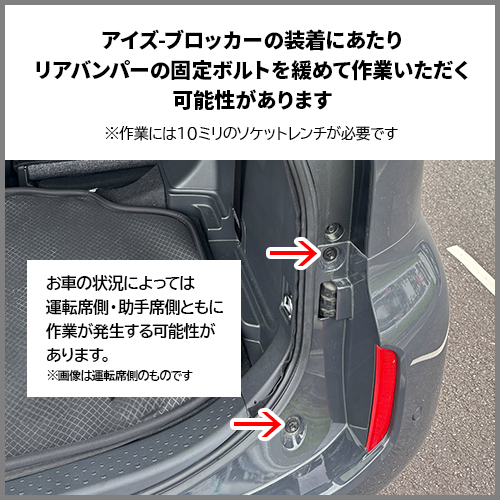 装着時にウェザーストリップモールを着脱しますが、元に戻す際にソケットレンチでバンパーを緩めて作業が必要となる可能性があります。