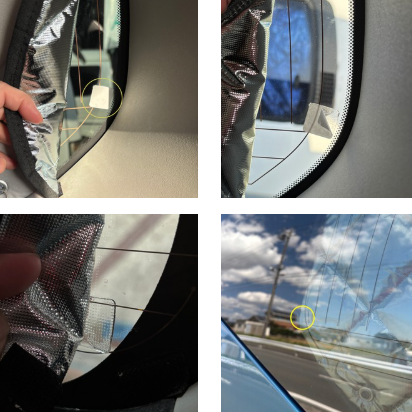 熱線やアンテナ線のところにも貼り付けることができますので、「吸盤ベースシール」に代わる装着補助として有用です。