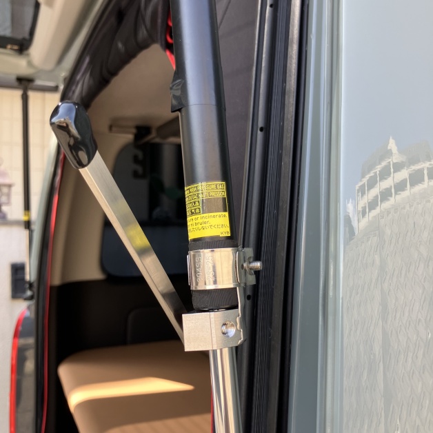 ご返事が遅くなり、申し訳ございません。 固定解除の際は「バックドアを持たずにハンドル操作していただいて」全く支障ありません。 また、ダンパーロッドの固定はロッドよりも柔らかい材質の真鍮材を押し付けることで固定しています。 またロッドに対しては曲面で締め付けることになるように、その真鍮材を曲面形状に加工しています。 通常の力でハンドルを締め付けてご使用いただく限り、ダンパーロッドに傷がついたり変形したりして、ダンパーシリンダーの中に封入されている、超高圧の窒素ガスのガス抜けを促進させてしまう懸念はまず大丈夫とお考えいただければと存じます。 なお、ハイエースのダンパーのガス反力の低下(ガス抜け)やダンパー交換に関することは、こちらを参照ください。 https://aizurv2.hamazo.tv/e9982860.html