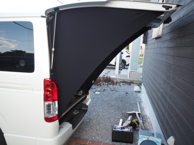 サブバッテリーを降してベッドの足のボルトを緩めて床板を持ち上げてモールを外してアイズ・ブロッカー取り付けたました。