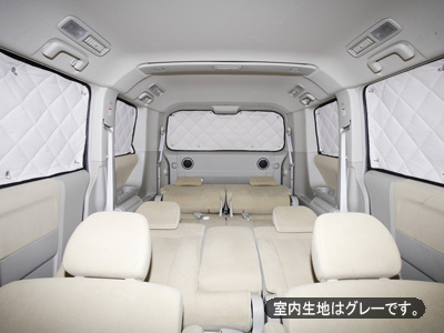走行時にも一部の窓にマルチシェードを装着することでエアコン効率が良くなり、エコ対策としてもオススメです。