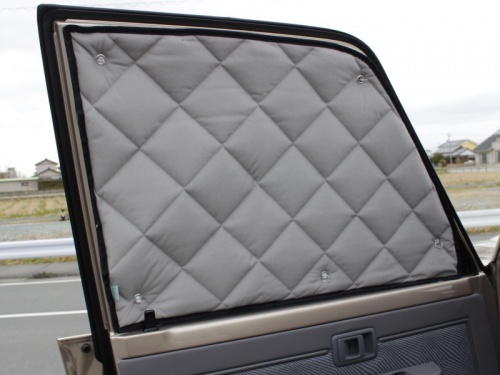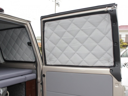 走行時にも一部の窓にマルチシェードを装着することでエアコン効率が良くなり、エコ対策としてもオススメです。