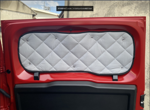 走行時にも一部の窓にマルチシェードを装着することでエアコン効率が良くなり、エコ対策としてもオススメです。